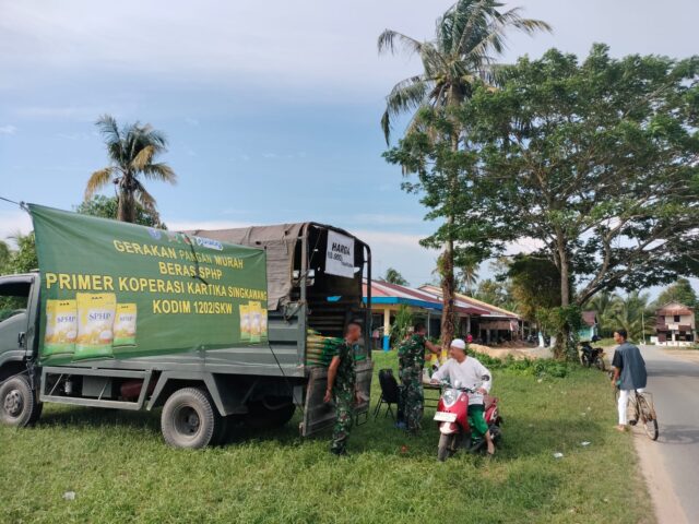 REPUBLIKA TIMES – Singkawang — Dalam upaya membantu pemerintah menjaga stabilitas harga dan memastikan ketersediaan bahan pangan bagi masyarakat, Kodim 1202/Singkawang melalui Koramil 1202-03/Singkawang Tengah turut mengawal pelaksanaan Gerakan Pangan Murah (GPM) dan penjualan beras Stabilisasi Pasokan dan Harga Pangan (SPHP) di Kelurahan Naram, Kecamatan Singkawang Utara. Selasa (07/10/2025)