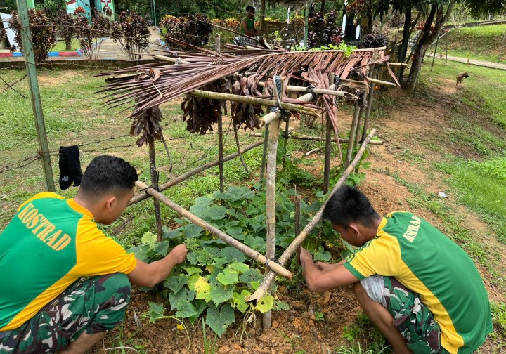Disela melaksanakan tugas pokoknya menjaga wilayah perbatasan, para prajurit Kostrad ini juga memanfaatkan lahan di sekitar pos dengan bercocok tanam dan beternak guna mendukung kebutuhan pangan sehari-hari sekaligus menginspirasi masyarakat untuk memanfaatkan lahan yang dimiliki secara optimal.