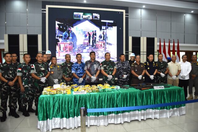 Dalam sambutannya, Pangdam XII/Tpr menegaskan bahwa pemusnahan ini merupakan hasil kerja keras dan sinergi Satgas Pamtas RI–Malaysia bersama instansi terkait selama lima tahun terakhir. Barang bukti yang dimusnahkan meliputi narkotika seberat 30.321,4 gram, 41 butir psikotropika, serta 1.173 pucuk senjata api rakitan.