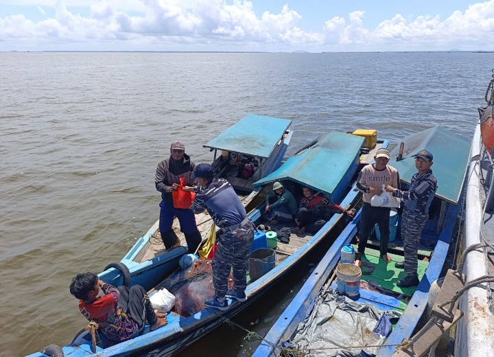PONTIANAK – REPUBLIKA TIMES – Komando Daerah TNI Angkatan Laut (Kodaeral) XII kembali menunjukkan kepeduliannya terhadap masyarakat maritim dengan menyalurkan bantuan sembako langsung di laut kepada para nelayan yang sedang melaksanakan aktivitas penangkapan ikan di wilayah perairannya.