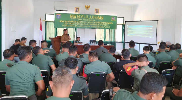 BENGKAYANG – REPUBLIKA TIMES – Kodim 1209/Bky menggelar kegiatan penyuluhan Pencegahan, Pemberantasan, Penyalahgunaan, dan Peredaran Gelap Narkoba (P4GN) sebagai upaya aktif dalam mencegah penyalahgunaan narkotika di lingkungan TNI maupun masyarakat sekitar. Kegiatan ini bertujuan untuk meningkatkan kesadaran tentang bahaya narkoba serta dampak negatif yang ditimbulkan jika terlibat dalam penggunaan maupun peredaran narkotika ilegal bertempat di Aula Makodim Jl. Raya Sanggau Ledo Kel. Desa Magmagan Karya Kec. Lumar Kab. Bengkayang.