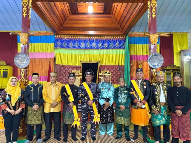 REPUBLIKA TIMES – Sanggau, TNI AL, Kodaeral XII – Komandan Komando Daerah TNI Angkatan Laut (Dankodaeral) XII, Laksamana Muda TNI Sawa, S.E., M.M., CIQaR., menerima gelar kehormatan dari Istana Surya Negara Sanggau dalam prosesi Titag Istana Surya Negara Faradje’ Pesaka Negeri Sanggau XVII Tahun 2025, yang berlangsung di Istana Surya Negara pada Selasa malam (23/9).