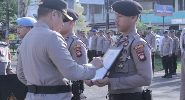 KETAPANG – REPUBLIKA TIMES – Dua anggota Polres Ketapang, Polda Kalbar, diberi sanksi pemberhentian tidak dengan hormat (PTDH) karena melakukan pelanggaran kode etik Polri. Dua polisi yang dipecat adalah Bripka F dan Briptu IA. Upacara pemberhentian dilakukan secara In Absentia dengan dilakukan pencoretan terhadap photo kedua anggota yang diberhentikan tidak dengan hormat.