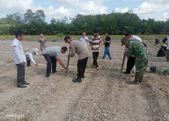 Anggota Koramil Selakau yang dipimpin Pelda Yosep Kristianus bersama yang lainnya bahu membahu menanam bibit jagung di lahan milik masyarakat. Tanam jagung ini merupakan program BUMDES Gunung Mas Sejahtera menggunakan dana desa. Sebelum dilakukan tanam perdana, lahan ini telah dilakukan pengolahan lahan.