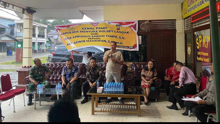 LANDAK – REPUBLIKA TIMES – Polsek Menyuke Polres Landak menggelar acara pisah sambut untuk pejabat Kapolsek yang lama dengan pejabat Kapolsek yang baru, di Dusun Pemantas Desa Darit Kecamatan Menyuke Kabupaten Landak, Kamis (11/09/2025).
