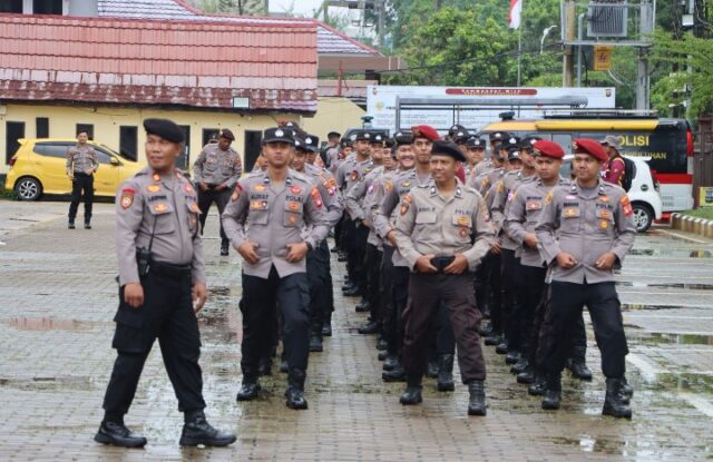 PONTIANAK – REPUBLIKA TIMES – Polresta Pontianak melaksanakan latihan pengendalian massa (Dalmas) di halaman Mapolresta Pontianak pada Sabtu pagi (13/9), meskipun saat itu cuaca diguyur hujan ringan.