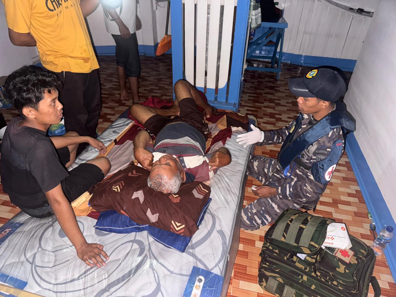 Setelah menerima laporan dari agen pelayaran, 2 personel Pos Binpotmar Kumai bersama 1 personel Bakes Lanal Kumai segera bergerak menggunakan sea rider menuju kapal. Tim kesehatan melakukan pemeriksaan awal, yang menunjukkan kondisi kesadaran korban menurun.